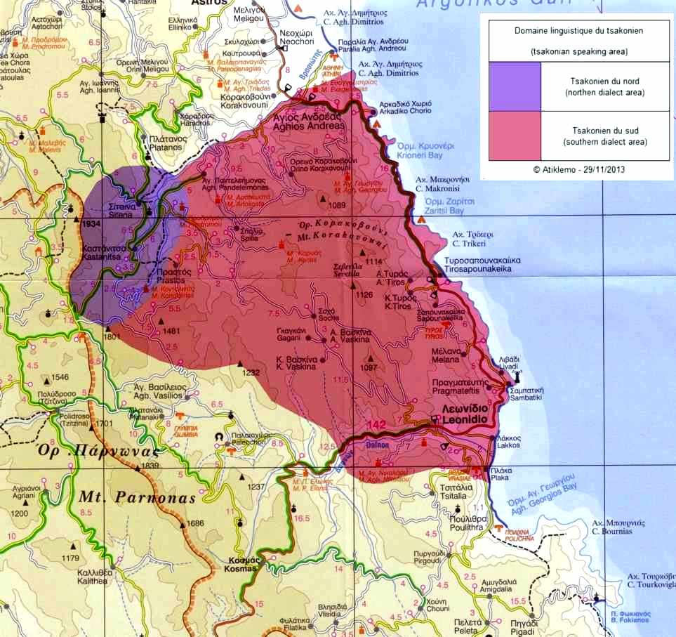 conservée à cause de l'isolement des populations, il est notable que la vieille génération parlait tsakonien comme