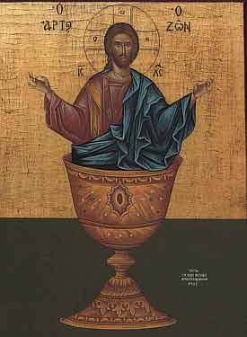 20. S. CYRILLE de Jérusalem, Catech. IV mystagog. : « Sous l'espèce du pain on vous donne le corps, et sous l'espèce du vin on vous donne le sang, afin que, prenant ainsi le corps et le sang de Jésus-Christ vous deveniez participants de son corps et de son sang. Ainsi nous serons Christophores, c'est-à-dire que nous porterons Jésus-Christ lorsque nous aurons reçu dans notre estomac son corps et son sang, et de cette manière nous deviendrons participants de la nature divine, comme l'a dit saint Pierre (II PIERRE, 1, 4).