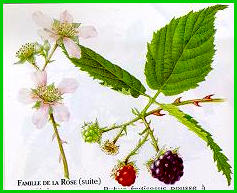 Blackberry leaves are very astringent used to heal mouth ulcers or strengthen the gums. In decoction they put an end to diarrhoeas and calms heumorroids. Out of herb tea or gargarism for coughs, sore throat. Also : Angina, leucorrhea, diabetes, haemorrhages, lithiasis, oliguria. In external use : Mouth ulcers, gums, gingivites, hoarseness, pharyngitis, ulcers, wounds, leucorrhea. Decoction : One spoonful for one cup of water, boil 2 minutes then let infuse 10 minutes ; 3 cups a day beteween meals. Decoction : One handful in one liter of water, boil 15 minutes, add 3 spoonfuls of honey for gargles and mouthwash.