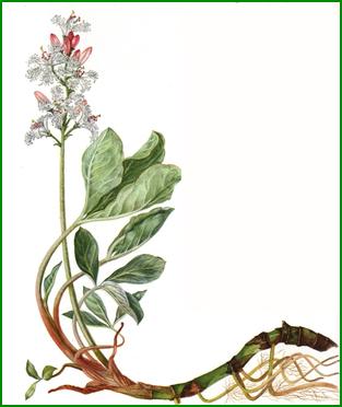 Bogbean has properties similar to gentian. Dyspepsia, lack of appetite, bad digestion, travel sickness, asthenia, overwork, rheumatic pains, fever, dermatosis, scabs. Compress and lotion : 50 g for one liter of boiling water, let infuse 10 minutes. Wine; 10g of fresh leaves in 1 liter of boiling red wine, let infuse during 10 minutes, 2 tablespoons before each meal.
