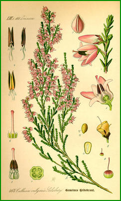 A cystitis does not resists more than 48 hours to heather herb tea. It is especially diuretic, sedative and disinfectant of the urinary tracts. Also useful for rheumatisms and all diseases related to excess of urea and uric acid. Also : Albuminuria, gout, enuresis, nephritis. In external use : Scabs, acne. Infusion : One tablespoon for 1 cup of boiling water, let infuse 10 minutes. Decoction : Boil 500 g of plant in a few liters of water to be added to the bath to improve muscular tonicity.