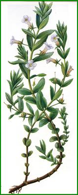 Dangerous plant in case of overdose. Hardy perennial of the wet and marshy grounds from 0,20 to 0,50 m, one uses the whole plant flowered and dried. Hedge hyssop is used for cirrhoses, chronic affections of the liver, jaundice. Also : Constipation, uraemia, oedemas. In external use : Dermathosis. Infusion : 5 g for one liter of boiling water ; 2 to 3 cups a day.