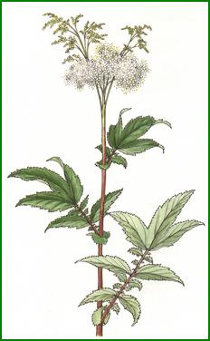 Meadowsweet contains a aspirin precursor, it is digestive, relieves gastric pains, diarrhoeas, rheumatic pains, it is a diuretic and helps with elimination of uric acid. Also in compress cataplasm to fight cellulitis. Also : Gastritis, gout, arteriosclerosis, hypertension, lithiasis. In external use : Wounds, ulcers, rheumatisms. Infusion : 1 reaspoon for 1 cup of boiling water, let infuse 10 minutes ; 5 cups a day or in compress on the painful parts. Decoction; 40g of roots for 1/2 liter of water, boil during 10 minutes then let infuse for 5 mimnutes in external use for cleansing the wounds.
