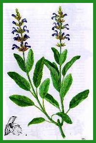 Common sage is an excellent general tonic, recommended in case of gastric or circulatory disorders, sage is febrifuge, helps for diabetes, for cold and controls perspiration. Also : Dysmenorrhoea, frigidity, impotence, emphysema, diarrhoea. In external use : Stomatitis, mouth ulcers, angina sore-throat, leucorrhea, ulcers, alopecia, insect bite, distorsion, hair. Decoction : One handful for one liter of water, boil 10 minutes, in mouthwash for gums or mouth ulcers, in gargle for throat ache, in compress on ulcers. Infusion : A teaspoon for 1 cup of boiling water, let infuse during 10 minutes; 3 cups per day. Lotion with a concentrated decoction (100g of leaves for 1 liter of water) mixed with rum in equal proportions, in scalp massage against hair loss, dandruff. Cream; crush 5 handfuls of fresh leaves, mixed with 500g shea butter, gently boil, filter, used in massage to relax the joints, against rheumatism, gout, sciatica, muscle pain , strengthen the nerves. Dried leaves smoked as a tobacco relieve asthma. A pinch of sage infused during 5 minutes in a cup of boiling milk can stop colds at the beginning. Mulled wine with sage can replace cinnamon mulled wine. Burning sage leaves over hot coals or boiled in a pot disinfect rooms.