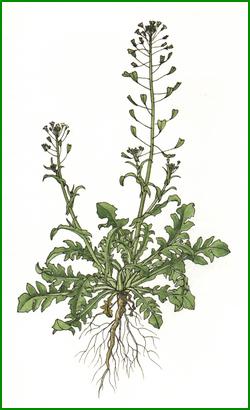 Disadvised during pregnancy Plant of waste lands from 0,10 to 0,30 m of which one uses whole. Shepherd's purse is especially efficient against external bleedings and internal hemorrhage. Also blood pressure, hypotensive, cystitis, diarrhoeas. Infusion : One spoonful for 1/4 liter of water, let infuse 10 minutes. Fresh plant juice or decoction on wounds and contusions. Nose bleeding : Introduce a coton macerateed with shepherd's purse juice in the nose.