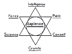Des sept dons ou esprits, trois ont leur siège dans la volonté , ce sont les dons de crainte, de piété et de force ; trois ont leur siège dans l'intellect : ce sont les dons de conseil, de science et d'intelligence. Le septième, qui est le don de sagesse, est au-delà de l'intellect comme de la volonté : il réside au centre même de l'âme, en ce centre simple et indivisible où l'être humain, surnaturalisé par la grâce, prend possession du Dieu intérieur, présent en lui, par une sorte d'expérience intime et immédiate où s'accomplit cette union dans la contemplation qui est le terme et l'achèvement de toute vie spirituelle.