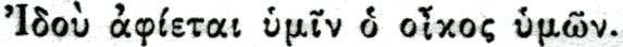 (2) Luc, XIII, 34, 35. - L'adjectif deserta, qu'on lit dans le texte de la Vulgate, est omis par les meilleurs manuscrits grecs : ![]()