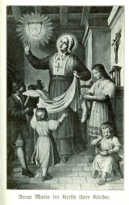 | " Le saint est mort ! " La nouvelle explose dès les premières heures de la nuit, par des bandes de jeunes garçons de la rue des " Serpenti " ; elle sinfiltre dans toutes les petites rues, à travers les ruelles du quartier " des Monts ", arrive dans les buvettes, grimpe sur tous les balcons, déborde dune place à lautre, jusquaux confins de la périphérie de Rome. Puis, de la périphérie au centre, en un rien de temps, ce fut un fourmillement de nobles, de pauvres, dartisans, de prêtres, de soldats, de commerçants, qui affluent vers le quartier " des Monts " rejoignent la foule accourue de partout, à travers la ville, à travers le quartier. On circule toute la nuit, sur la rue des " Serpenti " ; on y circule le jour et la nuit qui suivirent, jusquà ce que la dépouille mortelle de Benoit-Joseph Labre, la dépouille du saint, soit transportée dans léglise de Sainte-Marie-des-Monts, pour lensevelissement. Un cortège funèbre des plus imposants, suivra la dépouille ; les Romains nen ont jamais vu de semblable, si ce nest celui auquel ils avaient pris part lors de la sépulture de saint Philippe Néri. Benoit-Joseph Labre était, depuis longtemps, une personnage familier et apprécié des romains, de ceux surtout qui habitaient ce vieux quartier alors le plus populeux et le plus pauvre de la ville. Pas un homme, pas une femme, pas un enfant qui ne le connut pas, aux Monts, pour lavoir vu presque tous les jours, encore jeune cependant, courbé sous la souffrance et par les privations, maigre comme un ermite et vêtu de haillons, se traîner dans les venelles, se hâter vers cette église qui conserverait sa dépouille. Benoit-Joseph Labre était né, 35 ans auparavant, dans un petit village de campagne perdu dans on ne sait quelle contrée de la France. Rapidement, il avait voué sa vie à la pénitence et aux pèlerinages dé-ci, dé-là, dans les routes interminables de France, de Suisse, dEspagne, dAllemagne. Il sadonna à cette pratique, jusquà lépuisement de ses forces ; se traînant les pieds, il sest oriente vers lItalie, a traversé le pays par bien des chemins peu connus, et il a fini par atteindre Rome où, depuis lors, il avait passé ses journées à prier dans lune ou lautre des nombreuses églises, dans celle de Sainte-Marie-des-Monts quil affectionnait de façon particulière. Il avait passé ses nuits sous lescalier dune mansarde, sous les murs du Quirinal ou un arc quelconque du Colisée. Cest précisément, en sortant de léglise de Sainte-Marie-des-Monts que, le 16 avril 1783, Benoit-Joseph Labre saffaisse mourant, sur les marches de pierre de la façade de cette église. Quelquun accourt immédiatement, quelquun soffre à le transporter dans sa maison, à le déposer sur une paillasse, rue des Serpents. Mais le saint agonisait dans un état irrémédiable et il mourut à 8 heures du soir. La nouvelle se répandit dans la rue, par la fenêtre, et les bambins cessèrent alors leur vacarme habituel du soir, pour se faire les hérauts de la nouvelle sensationnelle qui sest vite répandue dans les quartiers, dans presque toute la ville : " Le saint est mort ! le saint est mort ! " Dans lintervalle, on saffairait à préparer le grand pèlerinage quoccasionnerait linhumation du pénitent. Il se trouva quelquun pour dire que ce pauvre devait être nettoyé, revêtu et bien disposé, comme la piété lexige en pareille circonstance. On suggéra le nom de Santa Giannetti, une pauvre mais brave domestique, habituée à ce genre dactes de charité. Elle habitait à quelques pas de là, dans la rue " delle Vergini ". Il sagissait de la faire demander. Ils y allèrent ; et elle vint, accompagnée dune jeune fille admirable, sa fille Anne Marie, âgée de quatorze ans, aux vêtements délicats et élégants pour autant. A lobserver de plus près, on remarquait sur son visage, les séquelles, caractéristiques de la variole. Anne-Marie se tenait à lécart, pour permettre à sa mère daccomplir sa tâche. La maman enleva pieusement les haillons de ce corps consumé par les maladies et les mortifications, le lava avec laide de labbé Marchesi, lui mit des vêtements propres et le revêtit de la bure de la Compagnie de Notre-Dame-des-Neiges, avec lequel il fut ensuite enseveli. Santa Giannetti et sa fille Anne-Marie nétaient pas originaires de Rome ; comme Joseph-Benoit, elles venaient de lextérieur, mais pas daussi loin que le saint pénitent français. Les deux cents kilomètres de chemin à parcourir pour en arriver à ce vieux quartier bruyant et misérable, elles les avaient tous, lun après lautre, parcourus à pied. Elles venaient de Sienne où elles avaient habité une maison beaucoup plus accueillante que celle qui les hébergeait, rue " delle Vergini ". Leur existence était aussi beaucoup moins misérable, si on en juge par les contraintes de la vie qui était la leur, à ce moment-là. À Sienne, le vieux Pierre Giannetti en était venu à se pourvoir dune pharmacie de premier ordre. Il dut y investir des heures, des années de travail, des années dépargne, pour en arriver, à la fin, à mettre la main sur une boutique parmi les plus belles de Sienne et de toute la Toscane. Des clients affluaient de partout, quand les médecins, dans les cas les plus compliqués, prescrivaient des potions et des liniments spéciaux qui dépassaient les prescriptions banales de la pharmacopée dusage commun. Louis Giannetti, le fils du pharmacien et pharmacien lui-même, hérita, à la mort de son père, dun nom honorable, dune fortune des plus enviables. Malheureusement, il navait pas comme son père, le tempérament discipliné, le sens de lépargne, laptitude à ne pas compter les heures de travail. Dans lespace de quelques années, il accumula des dettes qui finirent par lui rendre la vie impossible ; il en vint à la faillite. Avec son peu de jugement, sa bonhomie extravagante, sa naïve prodigalité, le pire malheur lui arriva, celui dentraîner dans la misère sa pr