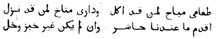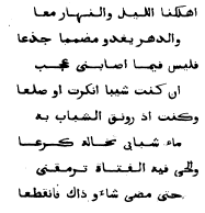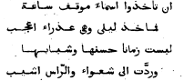 [58] Je pense que c'est ici qu'il faut ajouter ce vers du Kitab el Ikd (Yakouta) :