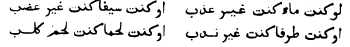 [51] Un poète, probablement de l'époque des Khalifes abbassides sous le règne desquels les littérateurs recherchèrent les comparaisons sans fin et les surcharges de mauvais goût, a imité ce vers dans les deux suivants:
