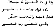 Il versait ses ondes sur la demeure de Salma. Où est la demeure de Salma? (Elle est loin d'ici!) Hélas! elle est voisine de el Sarir.[10]