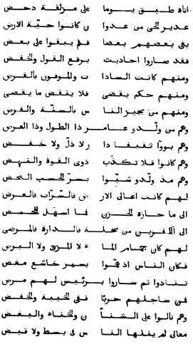 Enfin le satirique Djarwal, plus connu sous le nom d'El-Houthaya, comparait Ibn el Ward aux deux héros illustres Rébi ben Ziad surnommé le parfait et Antara.[40]