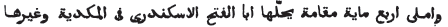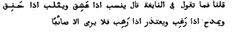 Quand il eut achevé ces vers, il dit: Messieurs, j'ai foulé aux pieds le sol que vous habitez, conduit par une ferme résolution, qui ne m'est point inspirée par l'amour ou par le besoin ; car j'ai laissé derrière moi des vergers, des vignes, de jeunes filles à la fleur de l'âge, des chevaux de grand prix, des monceaux d'or et d'argent (11), des provisions de toute espèce, une nombreuse famille, des chariots et des esclaves. Je suis sorti comme le serpent sort de son repaire, et l'oiseau de son nid, préférant ma religion à ma fortune, et joignant ma main droite à ma gauche (12). Si vous vouliez éteindre le feu avec ses propres étincelles, et lancer aux Grecs leurs propres pierres (13), et si vous m'aidiez à leur faire la guerre, en m'accordant quelque secours, en améliorant mon sort, et en répandant sur moi vos bienfaits. . . (14) Je n'ai point de prétentions excessives (15); que chacun m'assiste selon son pouvoir et en proportion de ses richesses ; je ne refuserai point une grosse somme, et j'accepterai une obole, une datte même ne sera pas refusée. J'ai pour toutes les occasions deux flèches: j'aiguise l'une pour le combat; l'autre, je la lance par la prière; elle part de l'arc de la nuit obscure, et pénètre les voûtes célestes.