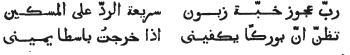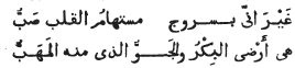 Mon cœur n'a d'amour que pour Saroudje, objet de mes regrets ; car Saroudje est ma terre vierge (ma patrie) et l'atmosphère d'où est parti mon souffle.