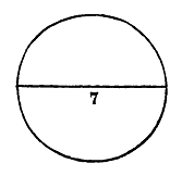 Dans tout cercle, si tu multiplies le diamètre par lui-même, et que tu en retranches le septième et le demi-septième, c'est sa mesure. Et cela concorde avec la formule de la première classe.[8]