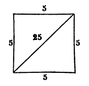Pour la mesure des quadrilatères dont les côtés sont égaux et les angles droits, ou les côtés inégaux et les angles droits, si tu multiplies la longueur par la largeur, le résultat est la mesure. Exemples : 1° Une pièce de terre quadrangulaire dont chacun des côtés a cinq derâa, sa mesure est de vingt-cinq derâa. Voici la figure :