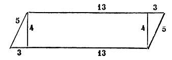 [13] Comme on le voit, Mohammed ben Moussa appelle longueurs les deux côtés parallèles les plus grands, et largeurs les deux autres côtés parallèles, dans le rhomboïde ou parallélogramme.