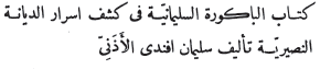 1) Kitâb al-bâkourâh-al-soulaimâniyjyah contenant l’exposé des secrets religieux des Nosaïris par SOLEÏMÂN-EFENDÎ d’Adhana.[2] (Sans lieu ni date. Imprimé à Beyrouth en 1863). 119 pages.