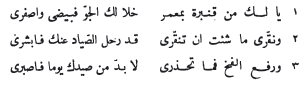 vers du 3e morceau du Diwân de 'Antara. Ce ms.