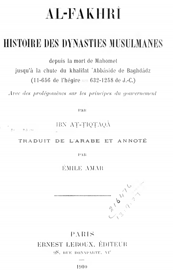 SECTION PREMIÈRE QUI TRAITE DES AFFAIRES DES SULTANS ET DE LA POLITIQUE DES ROISSECTION DEUXIEME CONTENANT L'HISTOIRE DES DYNASTIES, L'UNE APRÈS L'AUTRE