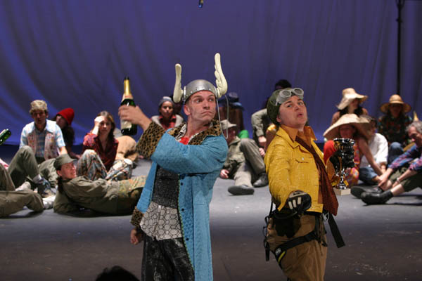 ὀρχησαμένους καὶ σπείσαντας καὶ Ὑπέρβολον ἐξελάσαντας,