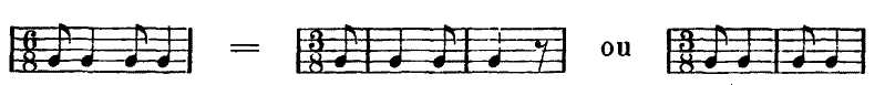 « Dans le genre iambique, les signes temporaires gardent entre eux (de l'arsis à la thésis, ou inversement) la proportion double, quel que soit encore le nombre des temps (1 : 2, 2 : 4, 3 : 6, 4 : 8). De même dans le genre péonique, où la proportion est sesquialtère (2 : 3, 4 : 6), et dans le genre épitrite, avec la proportion sesquiterce (3 : 4). Mais revenons à ce que nous disions tout d'abord.