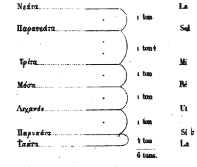 Πpὸs δὲ σαφήνειαν σχματιστέον οὕτω, ὑπάτη, παρυπάτη, ὑπερμέση,[41] μέση, παραμέση, παρανήτη, νεάτη