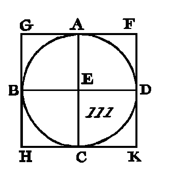 Puisque la droite BE est égale à la droite ED, car le point E est le centre, et que la droite EA est commune et perpendiculaire sur BD, la base AB sera égale à la base AD (prop. 4. I). Par la même raison, chacune des droites BC, CD est égale à chacune des droites BA, AD : donc le quadrilatère ABCD est équilatère. Je dis aussi qu'il est rectangulaire ; car puisque la ligne droite B D est un diamètre du cercle ABCD, la figure DAD sera un demi-cercle : donc l'angle BAD est droit (prop. 31. I); par la même raison chacun des angles ABC, BCD, CDA sera droit aussi : donc le quadrilatère ABCD est rectangulaire ; mais on a démontré qu'il est équilatère : donc ce quadrilatère est un carré, et ce quatre est inscrit dans le cercle ABCD. Donc on a inscrit le carré ABCD dans le cercle donné ABCD ; ce qu'il fallait faire. PROPOSITION VII.PROBLÈME.Circonscrire un carré à un cercle donné. Soit ABCD (fig. 111) le cercle donné : il faut circonscrire un carré au cercle ABCD. Conduisez dans le cercle ABCD les deux diamètres AC, BD de manière qu'ils soient perpendiculaires l'un sur l'autre ; et par les points A, B, C, D conduisez les droites FG, GH, HK, KF de manière qu'elles soient tangentes du cercle ABCD (prop. 17. III).