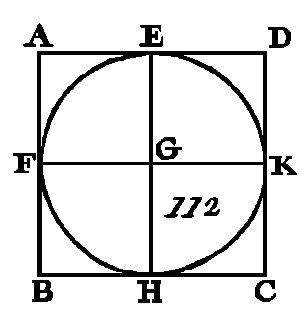 Puisque la droite FG est tangente du cercle ABCD, et que la droite EA a été conduite du centre E au point de contact qui est en A, les angles seront droits en A (prop. 18. III). Par la même raison les angles seront droits en B, C, D. Puisque l'angle AEB est droit et que l'angle EBG est droit aussi, la droite GH sera parallèle à la droite AC (prop. 28. I). Par la même raison la droite AG est parallèle à la droite FK. Nous démontrerons semblablement que l'une et l'autre des droites GF, HK est parallèle à la droite BED : donc les figures GK, GC, AK, FB, BK sont des parallélogrammes : donc la droite GF est égale à la droite HK (prop. 34. I), et la droite GH égale à la droite FK; et puisque la droite AC est égale à la droite BD, que la droite AC est égale à Tune et à l'autre des droites GH, FK, et que la droite BD est égale à l'une et à l'autre des droites GF, HK, les droites GH, FR seront égales aux droites GF, HK : donc le quadrilatère FGHK est équilatère, et je dis qu'il est rectangulaire ; car puisque le quadrilatère GBEA est un parallélogramme, et que l'angle AEB est droit, l'angle AGB sera droit aussi (prop. 34. I). Nous démontrerons semblablement que les angles qui sont placés vers les points H, K, F sont des angles droits : donc le quadrilatère FGHK est rectangle. Mais on a démontré qu'il est équilatère j donc le quadrilatère est un carré, et il est circonscrit autour du cercle ABCD. Donc on a circonscrit un carré au cercle donné; ce qu'il fallait faire. PROPOSITION VIII.PROBLÈME.Inscrire un cercle dans un carré donné. Soit ABCD (fig. 112) le carré donné : il faut inscrire un cercle dans le carré ABCD.
