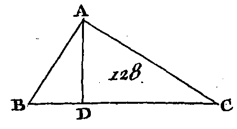 Car si l'angle ABC n'est pas égal à l'angle DEF, l'un d'eux sera plus grand. Que l'angle ABC soit le plus grand. Construisez sur la droite AB et au point B un angle ABG égal à l'angle DEF (prop. 23. I). Puisque l'angle A est égal à l'angle D et l’angle ABG égal à l'angle DEF, l'angle AGB sera égal à l'angle DFE (prop. 32. I) : donc les triangles ABG, DEF sont équiangles : donc AB est à BG comme DE est à EF (prop. 4. VI) ; mais par supposition DE est à EF comme AB est à BC : donc AB est à BC comme AB est à BG (prop. 11. V) : donc la droite AB a la même raison avec chacune des droites BC, BG : donc la droite BC sera égale à la droite BG et par conséquent l'angle BGC est égal à l'angle BCG (prop. 5. I) ; mais on a supposé que l'angle G est plus petit qu'un angle droit : donc l'angle BGC est plus petit qu'un angle droit et par conséquent l'angle de suite AGB est plus grand, qu'un angle droit (prop. 13. I) ; mais on a démontré que l'angle AGB est égal à l'angle F : donc l'angle F est plus grand qu'un angle droit ; mais on a supposé qu'il était plus petit qu'un, angle droit, ce qui est absurde : donc les angles, ABG, DEF ne sont pas inégaux : donc ils sont égaux ; mais l'angle A est égal à l'angle D : donc l'angle C est égal à l'angle F : donc les triangles ABC, DEF sont égaux. Supposons à présent que l'un et l'autre des angles C, F n'est pas plus petit qu'un angle droit : je dis encore que les triangles ABC, DEF sont équiangles. Ayant fait la même construction, nous démontrerons semblablement que le côté BC est égal au côté BG et l'angle C égal à l'angle BGC ; mais l'angle C n'est pas plus petit qu'un angle droit : donc l'angle BGC n'est pas plus petit qu'un angle droit : donc deux angles du triangle BGC ne sont pas plus petits que deux angles droits, ce qui est impossible (prop. 17. I) : donc les angles ABC, DEF ne sont pas inégaux : donc ils sont égaux ; mais l'angle A est égal à l'angle D : donc l'angle C est égal à l'angle F (prop. 32. I) : donc les triangles ABC, DEF sont équiangles. Donc si deux triangles ont un angle égal à un angle, si les côtés placés autour de deux autres angles sont proportionnels entre eux, et si chacun-des angles restants est en même tems plus petit ou n'est pas plus petit qu'un angle droit, les triangles seront équiangles et les angles adja-cens aux côtés proportionnels seront égaux ; ce qu'il fallait démontrer. PROPOSITION VIII.THÉORÈME;Si dans un triangle rectangle on conduit une perpendiculaire de l'angle droit sur la base, les triangles placés autour de la perpendiculaire sont semblables au triangle total et semblables entre eux. Soit le triangle rectangle ABC (fig. 128) dont l'angle BAC est droit; du point A conduisez la perpendiculaire AD sur la base BC : je dis que les triangles ABD, ADC sont semblables au triangle total ABC et semblables entre eux.