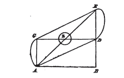 Concevons donc les deux hémitons, armés comme on vient de le dire, et posés sur certaines pièces transversales, à une distance l’un de l’autre un peu plus grande que deux fois la longueur de l'un des battants.[65] Concevons, en outre, les écussons inférieurs ABGD, EZHC, des hémitons, munis de tenons saillants ΚL, ΜΝ, ΧΟ, PB, et conjugués l'un à l'autre par des moises ST, UF, recevant les tenons. Supposons même dispositif à la partie supérieure.