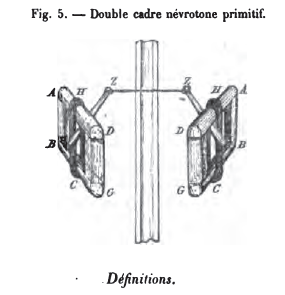 1° Dans l’ὀξυβελές construit par lui, chaque demi-faisceau est rectiligne, vertical, et placé au droit de l'autre. Le battant est logé entre les deux. La torsion est supprimée; et une entente meilleure du mécanisme névrotone a eu pour effet d'augmenter la portée.