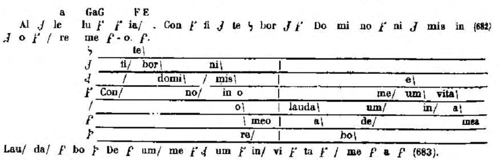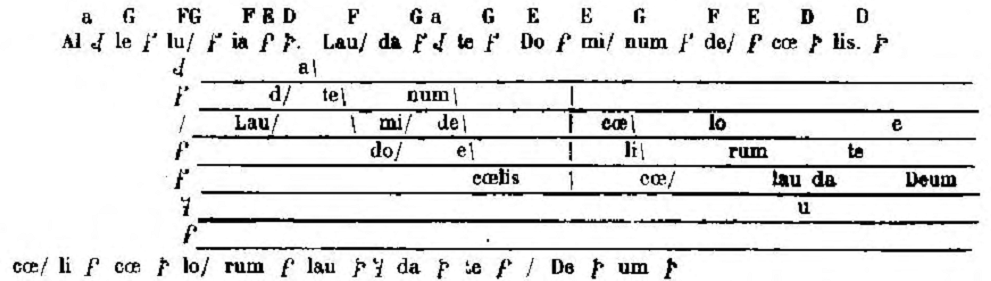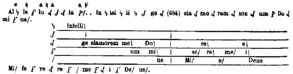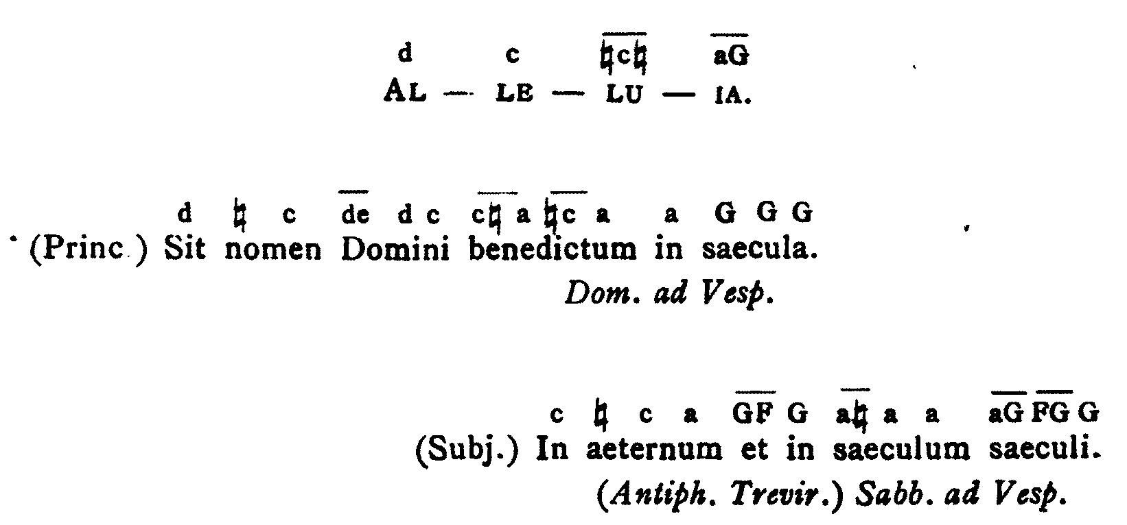 Cette mélodie s'est dénaturée depuis le IXe siècle; elle est aujourd'hui du tritus authentique (5e ton). Les sept autres chants donnés comme exemples n'ont pas varié depuis mille ans. Mélopée du tritus et de son plagal :