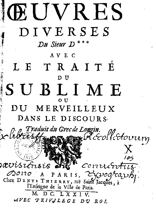 (Pseudo-) LONGINTRAITE DU SUBLIMEOU DU MERVEILLEUX DANS LE DISCOURS Traduit du Grec de Longin.
