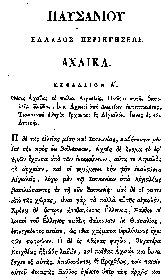 Αἰγιαλέως βασιλεύσαντος ἐν τῇ νῦν Σικυωνίᾳ, εἰσὶ δὲ οἵ φασιν ἀπὸ τῆς