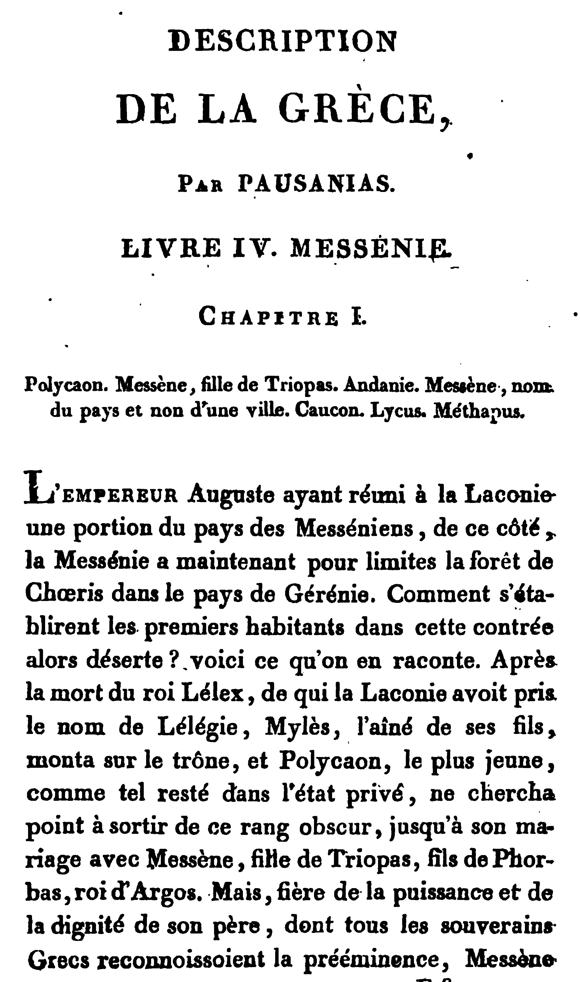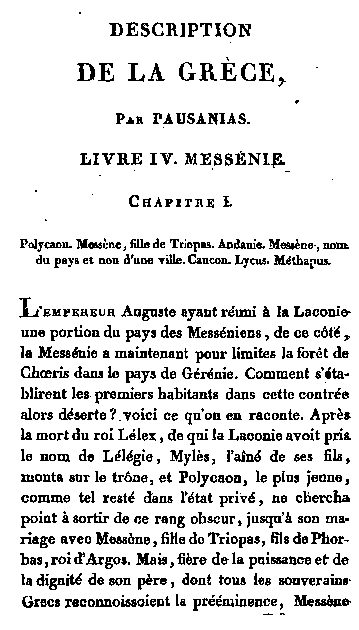 Caucon descendant de Phlyus se rendit à Messène ; elle confirme tout ce que j'ai