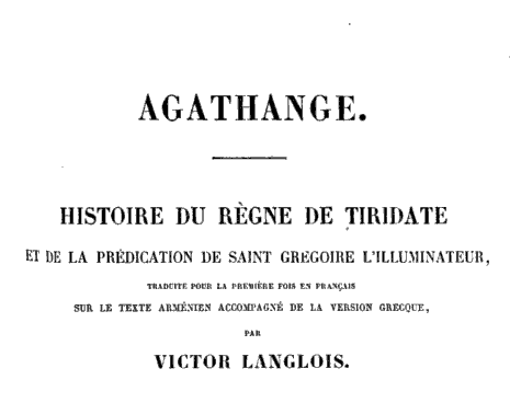 AGATHANGE.INTRODUCTION. Agathange, historien du quatrième siècle de notre ère, qui ouvre la série des annalistes arméniens dont les écrits nous sont parvenus, emplissait auprès du roi Tiridate II (Dertad) les fonctions de secrétaire. Les détails de la vie de ce personnage nous sont complètement inconnus. Cet écrivain est différent d’un autre Agathange, fils de Callistrate, dont parlent Léon Allatius et Fabricius. Les anciens écrivains de l’Arménie, comme Zénob de Glag et Moïse de Khorène, représentent Agathange comme un historien « sincère et très véridique », et Lazare de Pharbe lui décerne le titre « d’homme bienheureux ». Agathange, dans la préface de son Histoire, nous apprend qu’il était né à Rome, où lissait étudié les lettres grecques et latines; mais cette préface, qui se trouve seulement dans deux manuscrits arméniens, passe pour être apocryphe, et il serait téméraire de faire fond sur un document aussi peu certain, n’existant point dans la traduction grecque, plus complète à certains égards que le texte arménien. Le nom d’Agathange, Ἀγαθάγγελος, nous donne à penser que le personnage qui le portait était un Grec, vraisemblablement originaire des contrées occidentales de l’Arménie, situées sur la frontière des possessions byzantines en Asie. Toutefois ce nom, dont les Arméniens ont parfaitement connu le sens, puisqu’ils en donnent l’équivalant dans leur idiome, pari-hretchdag, « bon ange », paraît dire une traduction de l’appellation perse Οἰβάρας, mentionnée par quelques écrivains de l’antiquité, notamment par Ctésias, Nicolas de Damas, et par l’abréviateur de l’histoire de Trogue-Pompée, sous une forme un peu altérée, Sœbarès. Nicolas de Damas dit en effet : Ὁ γὰρ Οἰβάρας δύναται ἑλλάδι γλώσσῃ Ἀγαθάγγελος. Dans les additions qu’il a jointes à son édition de la Vie de César par Nicolas de Damas, M. Alfred Didot rapporte l’opinion d’Eugène Burnouf sur l’origine du nom d’Οἰβάρας, où le savant indianiste a reconnu le mot rend hubdra, signifiant « celui qui apporte le bien, le porte-bonheur. » L’histoire qui nous est parvenue sous le nom d’Agathange nous a été conservée dans les deux langues arménienne et grecque. Il est aujourd’hui démontré que le texte arménien a servi de prototype à la version grecque. Mgr Sukiaz de Somal avait d’abord formulé cette opinion avec réserve, et les savants Mékhitaristes vénitiens l’exprimèrent plus tard d’une façon formelle, dans la préface de l’édition italienne de l’Histoire d’Agathange, qui parut à Saint Lazare, sous le nom de M. Tomasseo. Les doctes religieux ont reconnu en effet que le texte arménien d’Agathange est conçu dans l’idiome le plus pur, et qu’il ne contient aucune trace d’hellénisme, tandis qu’au contraire le texte grec présente des différences sensibles avec l’arménien, et paraît en être la version due à un traducteur qui n’aurait pas toujours rendu avec fidélité le sens du document qu’il avait sous les yeux. L’opinion des savants Mékhitaristes, en ce qui concerne les deux textes de l’Histoire d’Agathange qui nous sont parvenus, est à l’abri de toute critique. Mais ce point établi ne constitue qu’un côté de la question; et, après avoir fait une étude approfondie des deux textes arménien et grec qui nous ont été conservés, nous avons cru découvrir que ces deux rédactions ne sont pas l’œuvre originale d’Agathange et qu’elles ont dû être précédées d’un texte plus ancien qui a disparu aujourd’hui. Ce qui nous fait supposer l’existence d’une première rédaction de l’Histoire du secrétaire de Tiridate, c’est la présence, dans les deux textes bilingues que nous possédons, d’une notable quantité d’interpolations, indiquant un remaniement général de l’œuvre d’Agathange, et la mention de personnages historiques qui ont vécu un siècle et demi après l’époque où florissait notre auteur. En outre, dans les deux rédactions qui nous sont parvenues sous le nom d’Agathange, le secrétaire de Tiridate se sert d’expressions tellement peu en rapport avec le respect dû à la majesté du roi d’Arménie, qu’il n’est pas possible d’admettre qu’un historien chargé par son souverain d’enregistrer tous les actes de sa vie, ait pu rédiger une biographie aussi peut édifiante de son maître, avant sa conversion au christianisme. Enfin, il est impossible d’admettre qu’Agathange ait pu dire qu’il fut témoin oculaire des événements et des prodiges qu’il raconte, et qu’il soit l’auteur de cette longue digression renfermant toute l’exposition de la doctrine de S. Grégoire l’Illuminateur, qui n’a dû être coordonnée et rédigée dans les termes qui nous ont été transmis, qu’à une époque où la foi chrétienne avait jeté déjà de profondes racines dans l’Arménie. Toutes ces raisons nous autorisent donc à supposer que les textes bilingues de l’Histoire d’Agathange que nous possédons actuellement sont l’œuvre d’un écrivain chrétien postérieur, qui aura fait subir à l’ouvrage original du secrétaire de Tiridate une transformation complète. En effet, l’Histoire d’Agathange, telle que nous la lisons aujourd’hui dans les textes arménien et grec, est bien plutôt l’œuvre d’une hagiographe, qui a voulu retracer le martyre de S. Grégoire, celui de sainte Hripsimè et de ses compagnes, qu’une histoire particulière du premier roi chrétien de la Grande Arménie. Au surplus, les doutes que nous émettons sur l’authenticité de l’Histoire d’Agathange avaient déjà été énoncés par le cardinal Baronius, et par les PP. Papebrock et Stilting, dans les Acta Sanctorum, qui firent de grandes réserves touchant l’authenticité des faits rapportés par le secrétaire de Tiridate. Il