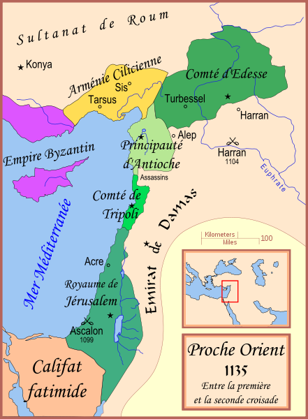 Son père étant mort le 10 novembre, et l'an de grâce onze cent quarante deux [02], Baudouin III reçut l'onction, et fut solennellement consacré et couronné, en même temps que sa mère, par les mains du seigneur Guillaume de bonne mémoire, patriarche de Jérusalem. Cette cérémonie fut célébrée la même année, et le jour de la naissance de Notre-Seigneur, dans l'église du Sépulcre : les princes et tous les prélats des églises y assistèrent, selon l'usage : le seigneur pape Eugène III gouvernait alors la sainte église romaine ; l'église d'Andoche était sous l'autorité du seigneur Aimery, le seigneur Guillaume dirigeait celle de Jérusalem, et l'archevêché de Tyr était occupé par le seigneur Foucher. La mère du roi était douée grande sagesse ; elle avait beaucoup d'expérience, et s'entendait au soin de toutes les affaires, du siècle, ce qui l'élevait au dessus de la condition ordinaire de son sexe, et la rendait propre à mettre la main aux choses qui demandent de la force. Elle s'efforçait d'égaler les princes les meilleurs et les plus illustres, et cherchait à suivre leurs traces d'aussi près que possible. Tant que son fils se trouva dans l'âge de puberté, elle gouverna son royaume et dirigea les affaires avec beaucoup d'habileté et de justice, et l'on disait d'elle, avec raison, qu'elle s'était montrée digne émule de ses ancêtres. Pendant tout le temps que le roi consentit à se laisser guider par ses conseils, le peuple jouit de toute la tranquillité qu'il pouvait désirer, et le royaume fut maintenu en parfaite prospérité. Les hommes légers, voyant que la sagesse de cette reine était un grand obstacle aux efforts qu'ils faisaient pour séduire le roi, employèrent tous leurs soins pour faire tourner au vice et aigrir contre ses conseillers un jeune homme flexible et maniable, comme on l'est toujours à cet âge, et l'entraînèrent, à force de sollicitations, à se débarrasser de la tutelle de sa mère, et à prendre en main le gouvernement du royaume de ses aïeux : ils lui disaient qu'il était indigne d'un roi, qui doit être élevé au dessus de tous les autres, de demeurer toujours suspendu au sein de sa mère, comme le serait le fils d'un particulier. Cette intrigue, conduite dès le principe par la légèreté, ou peut-être aussi par la malice de certaines personnes, fut sur le point d'entraîner la ruine de tout le royaume ; je trouverai dans la suite de mon récit l'occasion d'en parler avec plus de détail. |