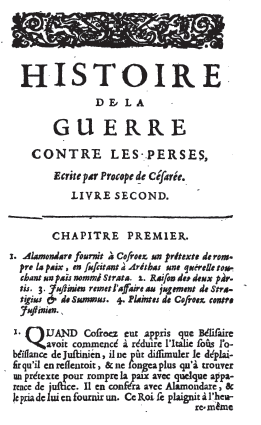 CHAPITRE PREMIER. 1. Alamondare fournit à Chosroes, un prétexte de rompe la paix, en suscitant à Aréthas une querelle touchant un pays nommé Strata. 2. Raison des deux partis. 3. Justinien remet l'affaire au jugement de Stratigius et de Summus. 4. Plaintes de Chosroes contre Justinien. 1. Quand Chosroes eut appris que Bélisaire avait commencé à réduire l'Italie sous l'obéissance de Justinien, il ne put dissimuler le déplaisir qu'il en ressentait et ne longea plus qu'à trouver un prétexte pour rompre la paix avec quelque apparence de justice. Il en conféra avec Alamondare, et le pria de lui en fournir un. Ce Roi se plaignit à l'heure même qu'Aréthas entreprenait sur les Etats ; il, en vint aux mains avec lui et fourragea les terres de l'Empire. Il .prétendent néanmoins ne rien faire en cela contre le traité de paix, d'autant qu'il n'y avait pas été compris. Il est vrai qu'il n'y avait que les Romains et les Perses nommés dans le traité, et qu'il ne faisait aucune mention des Sarrasins. Le pays qui servait de sujet au différend s'appelle Strata, et est pioche de la ville de Palmyre du coté du Nord. Il est tellement brûlé du Soleil qu'il ne produit ni blé, ni arbres ; il y a seulement des pâturages. 2. Aréthas soutenait que ce pays avait appartenu de tout temps aux Romains, et que le nom seul en était une preuve suffisante, parce que Strata en Latin signifie un chemin pavé. Il ajoutait à cela le témoignage de tout ce qu'il y avait de personnes fort avancées en âge. Alamondare répondait, qu'il était inutile de contester sur le nom, puis qu'il était constant que c'était lui qui était en possession de recevoir le revenu des pâturages de ceux qui y mettaient leurs troupeaux. 3. Justinien. remit cette affaire au jugement de deux hommes illustres dont l'un était Stratigius Patrice, et. Surintendant des Finances, et l'autre Summus capitaine des troupes de la Palestine, et frère de Julien, qui un peu auparavant avait été envoyé en Ambassade vers les Ethiopiens et les Omérites. L'avis de Summus était que les Romains ne devaient pas abandonner ce pays-là. Stratigius au contraire conjurait l'Empereur de ne pas donner aux Perses le prétexte qu'ils demandaient, de reprendre les armes pour un pays stérile, de peu d'étendue et de nul revenu. Justinien, tint plusieurs conseils, et délibéra sort longtemps sur cette affaire. 4. Chosroes se plaignait que Justinien avait violé la paix qu'il avait formé une conjuration contre sa famille ; qu'il avait tâché de corrompre Alamondare Roi des Sarrasins; que Summus étant allé trouver ce Prince, à dessein de conférer avec lui, il lui avait offert de l'argent pour l'engager à passer dans le parti des Romains. Il montrait même la lettre qui lui en avait été écrite. Il ajoutait que Justinien avait aussi écrit aux Huns pour les solliciter; à faire irruption sur ses terres, et que la lettre lui avait été apportée par quelques-uns de la nation qui l'étaient venu visiter. Voila de quoi Chosroes accusait les Romains, afin de rompre la paix. Mais je ne sais pas bien si toutes ces choses étaient véritables. |