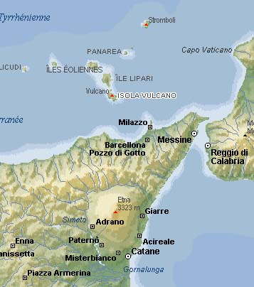 (245) Lipara, malgré la faible étendue que lui attribue Thucydide, est la plus grande de ce groupe des îles Eoliennes. Dans Stronggylè se trouve le volcan Stromboli en activité, dont le cratère haut de 700 mètres vomit sans cesse une fumée rougeâtre. Toutes ces fles offrent des traces volcaniques ; Hiera où Thucydide, d'après les gens du pays, situe les forges d'Héphaestos (Vulcain) se nomme actuellement Volcano et présente des solfatares. Héphaestos personnifie le feu. II était honoré aux lieux d'où s'échappaient des gaz inflammables, près des cratères des volcans qui passaient pour être ses ateliers de forgeron. Le culte de ce dieu était en honneur aux îles Lipari.