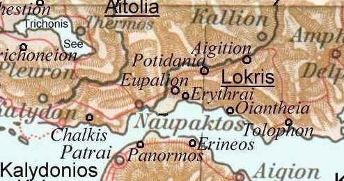 (253) Aegition est situé d'après l'auteur à 15 kilomètres (80 stades) au N.-E . de Naupakte, en réalité à une vingtaine .