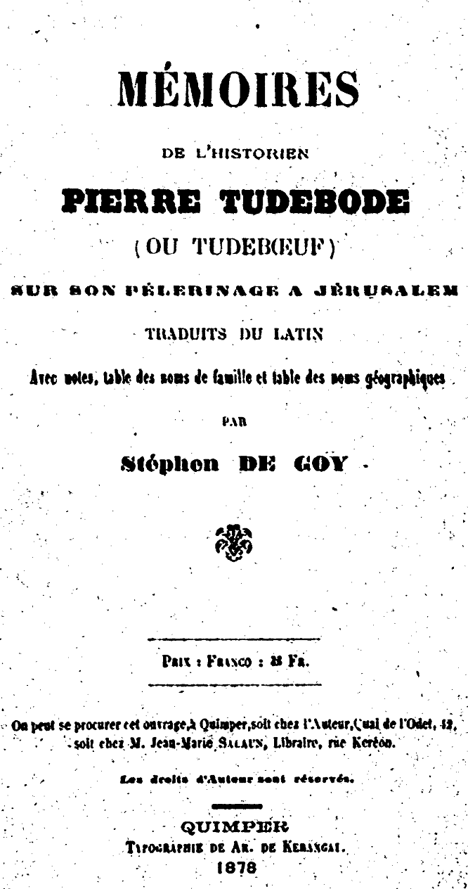 MÉMOIRES DE PIERRE TUDEBODE PRETRE (DE CIVRAY) SUR SON PELERINAGE A JERUSALEM