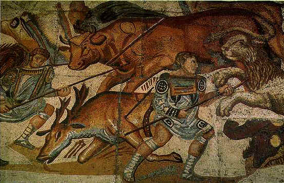 [1] Λέοντες δὲ καὶ παρδάλεις, λύγκες, πάνθηρες, ἄρκτοι καὶ τἆλλα ὅσα ἐστὶ τοιαῦτα θηρία ἁλίσκεται ἐν ξέναις χώραις περὶ τὸ Πάγγαιον ὄρος καὶ τὸν Κίττον τὸν ὑπὲρ τῆς Μακεδονίας, τὰ δ᾽ ἐν τῷ Ὀλύμπῳ τῷ Μυσίῳ καὶ ἐν Πίνδῳ, τὰ δ᾽ ἐν τῇ Νύσῃ τῇ ὑπὲρ τῆς Συρίας, καὶ πρὸς τοῖς ἄλλοις ὄρεσιν ὅσα οἷά τ᾽ ἐστὶ τρέφειν τοιαῦτα. [2] Ἁλίσκεται δὲ τὰ μὲν ἐν τοῖς ὄρεσι φαρμάκῳ διὰ δυσχωρίαν ἀκονιτικῷ· παραβάλλουσι δὲ τοῦτο οἱ θηρώμενοι, συμμιγνύντες εἰς τὸ αὐτὸ ὅτῳ ἂν ἕκαστον χαίρῃ περὶ τὰ ὕδατα καὶ πρὸς ὅ τι ἂν ἄλλο προσίῃ. [3] Τὰ δὲ αὐτῶν καταβαίνοντα εἰς τὸ πεδίον τῆς νυκτὸς ἀποκλεισθέντα μετὰ ἵππων καὶ ὅπλων ἁλίσκεται, εἰς κίνδυνον καθιστάντα τοὺς αἱροῦντας. [4] Ἔστι δὲ οἷς αὐτῶν καὶ ὀρύγματα ποιοῦσι περιφερῆ μεγάλα βαθέα, ἐν μέσῳ λείποντες κίονα τῆς γῆς. ἐπὶ δὲ τοῦτον εἰς νύκτα ἐπέθεσαν δήσαντες αἶγα, καὶ ἔφραξαν κύκλῳ τὸ ὄρυγμα ὕλῃ ὥστε μὴ προορᾶν, εἴσοδον οὐ λείποντες. τὰ δὲ ἀκούοντα τῆς φωνῆς ἐν τῇ νυκτὶ κύκλῳ τὸν φραγμὸν περιθέουσι, καὶ ἐπειδὰν μὴ εὑρίσκῃ δίοδον, ὑπερπηδᾶι καὶ ἁλίσκεται. |
