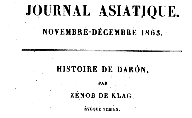HISTOIRE DE DARÔN, PAR ZÉNOB DE KLAG, EVEQUE SYRIEN. PRÉFACE. La biographie de Zénob, de même que celle de tous les historiens arméniens en général, à quelque époque qu'ils appartiennent, manque presque complètement, et nous n'en connaissons guère, à vrai dire, que ce qu'il lui a plu de nous apprendre lui-même, ce qui se réduit à fort peu de chose. Nous savons seulement qu'il était Syrien, originaire de Klag, ville dont la position géographique n'est pas bien connue, mais qui devait être située dans le voisinage de la frontière d'Egypte, et disciple de saint Grégoire l'Illuminateur, qui le sacra plus tard évêque et abbé du monastère des Neuf-Sources, dont, suivant le témoignage de Jean Mamigonien, son trente-cinquième successeur, il conserva le gouvernement pendant vingt ans.[1] Quoiqu'il ne le dise pas formellement, il résulte de l'ensemble de son livre qu'il dut vivre avec son maître dans une assez grande intimité, en remplissant auprès de lui des fonctions fort semblables à celles de secrétaire, car nous le voyons constamment à ses côtés. Il ne nous reste rien autre chose de Zénob que son Histoire de Daron, district de la province de Douroupéran, sur les limites de l'Arménie et du monde syriaque, et berceau primitif du christianisme arménien. Cette histoire, qu'il écrivit par ordre et sous la dictée de saint Grégoire, à la prière de plusieurs évêques, ses compatriotes, se compose, à proprement parler, de deux lettres, dont la première est consacrée plus particulièrement à l'introduction belliqueuse du christianisme dans le district de Darôn. Lorsque Tiridate II, vaincu par la patience autant que par la parole enthousiaste et persuasive de Grégoire, eut enfin consenti à embrasser la religion qu'il avait proscrite par ses édits et persécutée par ses bourreaux, son premier soin fut de renverser les divinités nationales. En compagnie de l'apôtre et suivi d'une armée considérable, il parcourut une grande partie de son royaume, détruisant tous les monuments de l'ancien culte, et les remplaçant par des croix. Nulle part sur son passage il ne se manifesta de résistance, et lorsque, venant de recevoir, à Césarée de Cappadoce, la consécration épiscopale, l'Illuminateur apprit qu'il restait encore des idoles debout dans le district de Darôn, il put croire qu'il suffirait sans doute de l'effroi du nom de Tiridate pour les faire tomber, il en fut autrement. Ce pays était occupé, depuis plus de quatre cents ans, en partie du moins, par une colonie sacerdotale nombreuse venue de l'Inde, sous la conduite de deux frères, Kiçanê et Témétr. Sincèrement attachés à leurs dieux, soutenus d'ailleurs par le prince de Haschdiank' et favorisés par l'accès difficile de leurs montagnes, les Indiens résolurent de défendre, les armes à la main, le culte de leurs pères et leur nationalité. Quand Grégoire se présenta à l'entrée de leur territoire, secrètement instruits de ses projets, ils l'attaquèrent avec vigueur et mirent même sa vie en danger. La victoire fut chaudement disputée, et il ne fallut rien moins que la supériorité des princes arméniens dans le métier de la guerre, pour venir à bout de leur résistance. Les Indiens furent vaincus, leurs idoles et leurs temples détruits, et, sur leurs débris, Grégoire éleva des églises et des monastères, qu'il plaça sous la direction de moines ou de prêtres syriens et grecs venus avec lui de Césarée et de Sébaste. Ceux qui refusèrent d'adopter l'Evangile furent tués ou jetés en prison loin de leur pays. Ces faits, joints au récit sommaire des événements accomplis en Arménie depuis la mort d'Ardévan, de la naissance et de l'éducation de saint Grégoire, ainsi que de quelques autres d'un non moindre intérêt, comprennent l'espace écoulé entre les années 205 et 304 De Darôn, Grégoire écrivit à l'évêque de Césarée pour lui demander des collaborateurs. Celui-ci répondit par une lettre où, après quelques conseils, il l'informait qu'à sa prière un certain nombre de prêtres étaient déjà partis pour se rendre en Arménie, pendant que d'autres, chassés par les hérétiques, avaient été forcés de s'exiler. Cette nouvelle causa à Tiridate et à Grégoire une douleur profonde. Sur le champ ils écrivirent à ces derniers une lettre chaleureuse dans laquelle ils leur reprochaient leur départ, leur peignaient l'état d'abandon religieux où se trouvait l'Arménie, et leur adressaient les offres les plus séduisantes pour les engager à venir sans retard les aider de leur ministère. Ils ne vinrent que plus tard, et encore pas tous. En 318, Tiridate, ayant appris que Constantin s'était converti au christianisme, partit accompagné de saint Grégoire pour se rendre à Rome, dans le but de contracter un traité d'alliance avec le puissant empereur. Pendant ce temps-là, soit par haine de la religion nouvelle, soit par mécontentement de Tiridate, plusieurs de ses nakharars, poussés par cet esprit de rébellion qui fut si fatal à l'Arménie à toutes les époques de son histoire, se liguèrent contre leur souverain avec le roi des Huns, qui, désireux de venger de précédentes défaites, envahit le territoire arménien à la tête d'une armée considérable. Rentré dans le district de Darôn, à son retour de Rome, le roi d'Arménie fut cerné tout à coup, au milieu de la nuit, par cinquante-huit mille hommes qui, grâce à la trahison de ses princes, avaient pénétré jusque-là sans rencontrer d'obstacle, et manœuvraient à son insu pour s'emparer de sa personne. La lutte fut vive et meurtrière, car les soldats du Nord, étaient aguerris et doubles en nombre de l'armée arménienne. Cependant, à force de courage et d'habileté, Tiridate triompha. Les ennemis furent complètement défaits et rentrèrent chez eux plus que décimés. Telle est en substance, avec la fondation d'un monastère célèbre qui est encore de nos jours un de