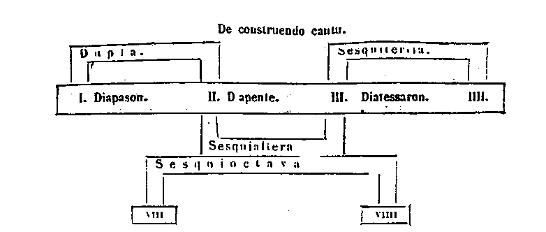 [1] Parce qu'en effet ils ont un rythme, comme les vers, et que les distinctions y sont ordonnées à la manière des vers, c'est-à-dire ayant toutes une longueur déterminée et à peu près égale, parfois môme étant réunies en forme de strophe poétique, bien que le texte soit une simple prose. On se rappelle la distinction établie par les rythmiciens entre le rythme, le mètre et le vers : tout rythme n'est pas mètre ni vers, mais tout mètre et tout vers est nécessairement rythme ; le mètre ajoute au rythme la détermination du nombre et de la forme des pieds rythmiques. Cela explique la pensée de Guy d'Arezzo dans ce passage : il y a des mélodies qui sont rythmes purs, parce que les distinctions ou membres de phrases n'y sont soumis à aucune règle de longueur déterminée; ce sont les chants qu'on pourrait, dit-il, appeler prosaïques. Il y en a d'autres, où les rythmes sont de longueur et de forme absolument déterminées et réglées sur un texte poétique, les hymnes par exemple; ceux-là sont proprement métriques. Il en est d'autres enfin, composés sur de la prose, mais en donnant aux rythmes, c'est-à-dire aux distinctions ou membres de phrase, une étendue et des formes assez déterminées pour qu'on puisse les assimiler en quelque sorte à des rythmes métriques. Cette assimilation suppose nécessairement deux choses : des pieds rythmiques, que le chanteur scande à la manière des pieds métriques dans les vers, puis une étendue limitée pour chaque rythme et à peu près égale à celle des vers. [2] J'omets ici une phrase qui n'est pas à sa place ; ce qu'elle contient fait l'objet du chapitre xvi, où sont expliqués ces divers mouvements mélodiques, par préposition, supposition, apposition, etc., et où se trouve le tableau annoncé à la fin de la phrase.