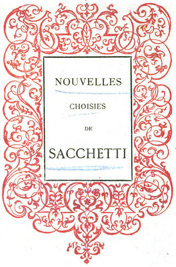 [1] Ginguené en compte par erreur deux cent cinquante-huit (Histoire littéraire d'Italie, tome III) ; il a été trompé par le chiffre de la dernière Nouvelle, qui est bien en effet CCLVIII, mais les éditeurs Italiens ont avec raison conservé à chacune d'elles, comme nous l'avons fait nous-même pour notre Choix, le numéro qu'elle porterait dans le recueil complet. En réalité, outre les quarante-deux dernières, dont il ne subsiste pas trace, il en manque trente-cinq dans le corps de l'ouvrage, et une trentaine des deux cent vingt-trois qui restent ne sont que des fragments réduits parfois à quelques lignes. [2] Grande fut gia la colonna del Vaio, Sacchetti, Giuochi, Fifanti, Barucci E Galli, e quei ch'arrossan per lo Staio... (Paradiso, XVI, 103-105.) [3] Ce n'est qu'un fragment assez informe, ce qui nous a empêché de la traduire. [4] Quelques-unes de ses poésies, entre autres douze Sonnets, des lettres, tant Italiennes que Latines, et les Sermons évangéliques, ont été recueillis par M. Ottavio Gigli et forment le premier volume des Opere di Franco Sacchetti (Florence, Le Monnier, 1857-1860, 3 vol. grand in-18). [5] Canzone cité par M. Ottavio Gigli.