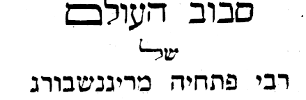A son retour il publia la relation de son voyage sous le titre de Sibbub h'olam, Tour du monde ; cette relation, qui ne nous est point parvenue, paraît avoir été rédigée par Juda Chasid, ci-dessus mentionné, et mise ensuite en abrégé par quelqu'un de ses disciples dont le nom est ignoré. Mais quel que soit l'auteur de cet extrait, il est certain qu'il a omis la majeure partie de la relation de notre voyageur, et ne nous a transmis qu'un court abrégé. Cet abrégé a été imprimé pour la première fois à Prague, en 1595, in -4°, avec le Medrasch Jonas; plus tard il en parut une nouvelle édition à Amsterdam, puis une traduction allemande en caractères hébraïques également à Prague. Ces éditions sont si rares, qu'il nous a été impossible de nous les procurer. La seule que nous ayons eue en notre pouvoir est celle que Wagenseil a publiée avec une traduction latine dans ses Exercitationes, Altorf, 1687 et 1696, in-4°, et qui a été reproduite dans les Institutions rabbiniques de Zanolini, et dans le trésor des antiquités sacrées d'Ugolini. Quant à celle que nous publions ici elle est faite d'après une copie écrite à Colmar en 1650, par notre trisaïeul le rabbin Meir Carmoly, et elle est beaucoup plus exacte que celle de Wagenseil.[1]