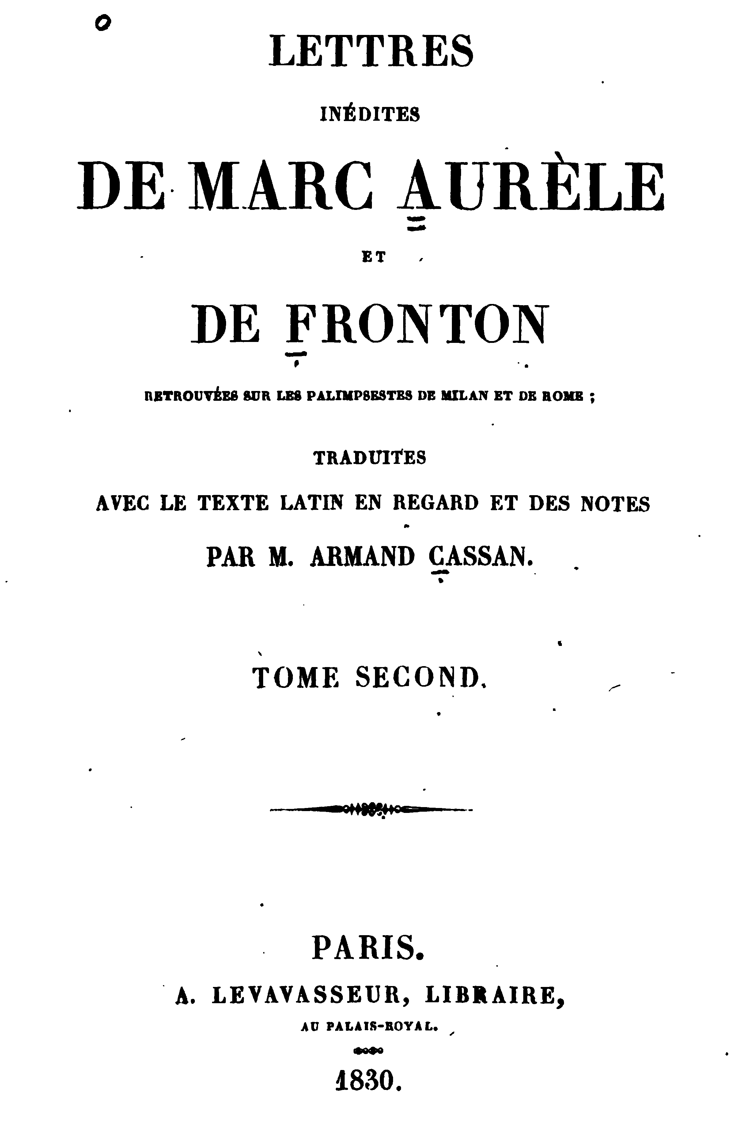 LETTRES DE M. CORNELIUS FRONTO A SES AMIS