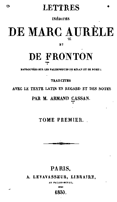 FRAGMENTS DE LETTRES DE M. C. FRONTO A M. ANNIUS VERUS |