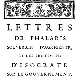 L'utilité du pouvoir monarchique, contenant l'histoire de Phalaris : avec ses lettres sur le gouvernement et les conseils d'Isocrate, ou le modèle des ministres